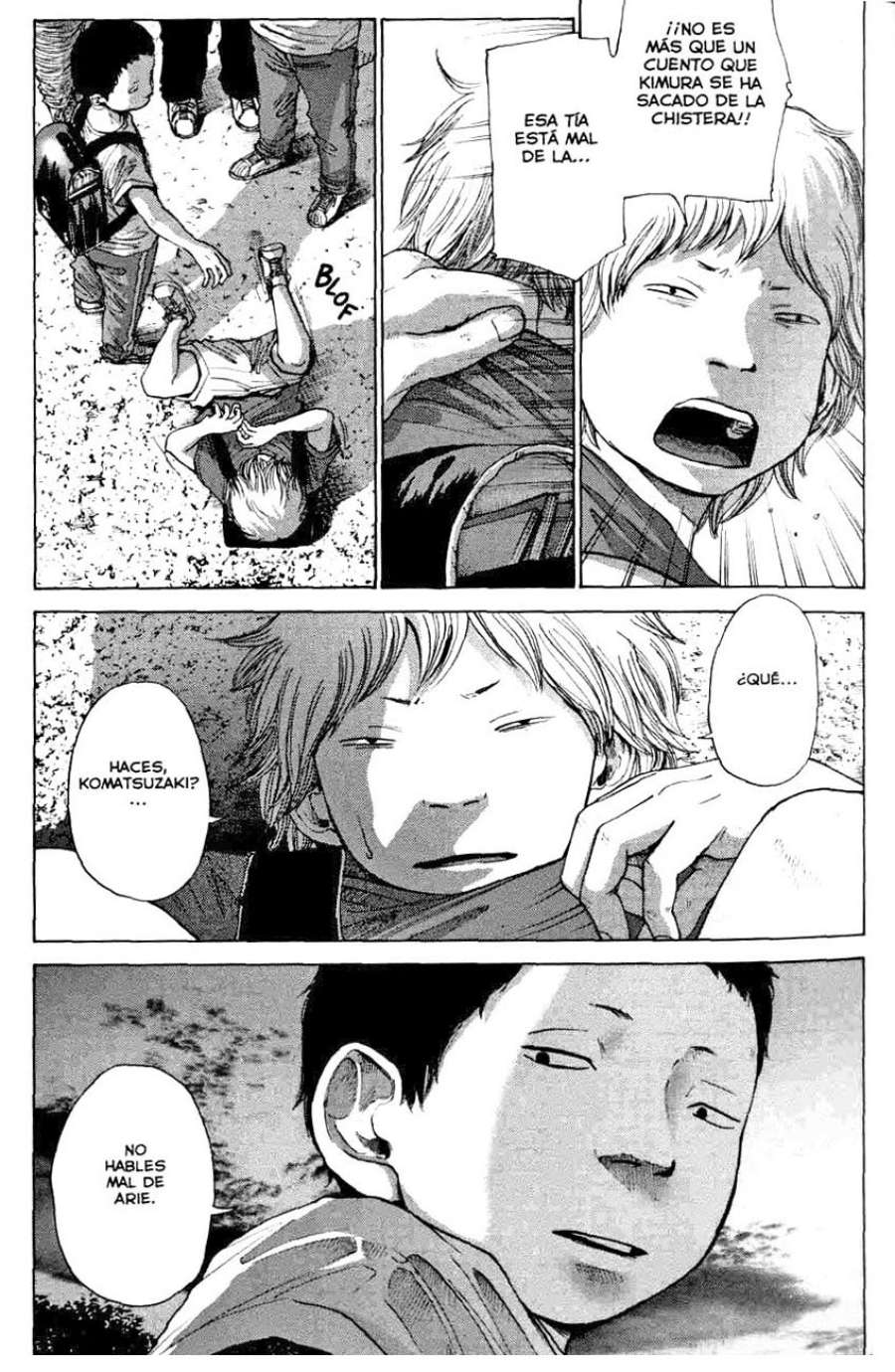 Suzuki es un chico problemático. Ha vivido con padres adoptivos indiferentes la mayor parte de su vida, alienado de los otros niños de su escuela, dueño de una mentalidad cínica e infeliz. Komatsuzaki es un matón violento e impredecible cuyo traumatismo craneal le hace actuar de forma misteriosa e inexplicable. Arakawa es una chica normal y sin ton ni son, que suspira por Komatsuzaki pero que nunca podrá tenerlo.